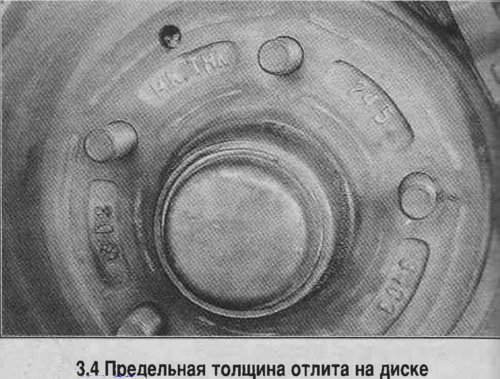 4. После шлифовки толщина диска не должна быть меньше предельно допустимой, которая отлита на диске (смотрите фотографию).