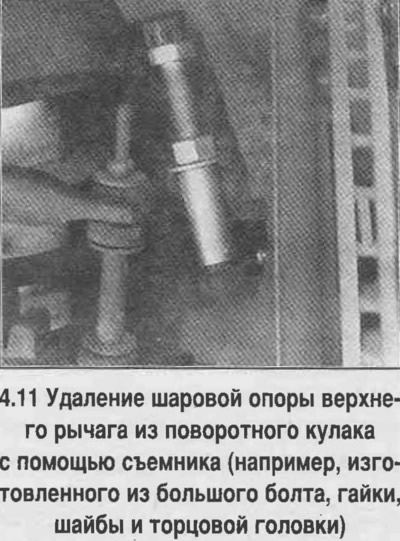 11. Выпрессуйте съемником шаровую опору рычага из поворотного кулака (смотрите фотографию).