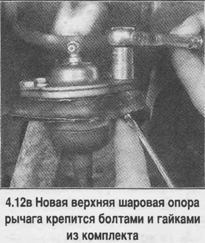 Внимание! Домкрат должен оставаться под рычагом на все время снятия и установки шаровой опоры рычага, чтобы воспринимать усилие от пружины подвески.