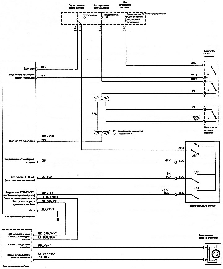 Типовая электрическая схема круиз-контроля (модели 1996 года)