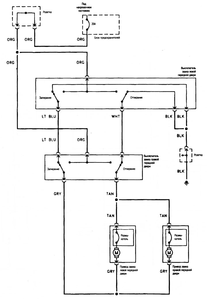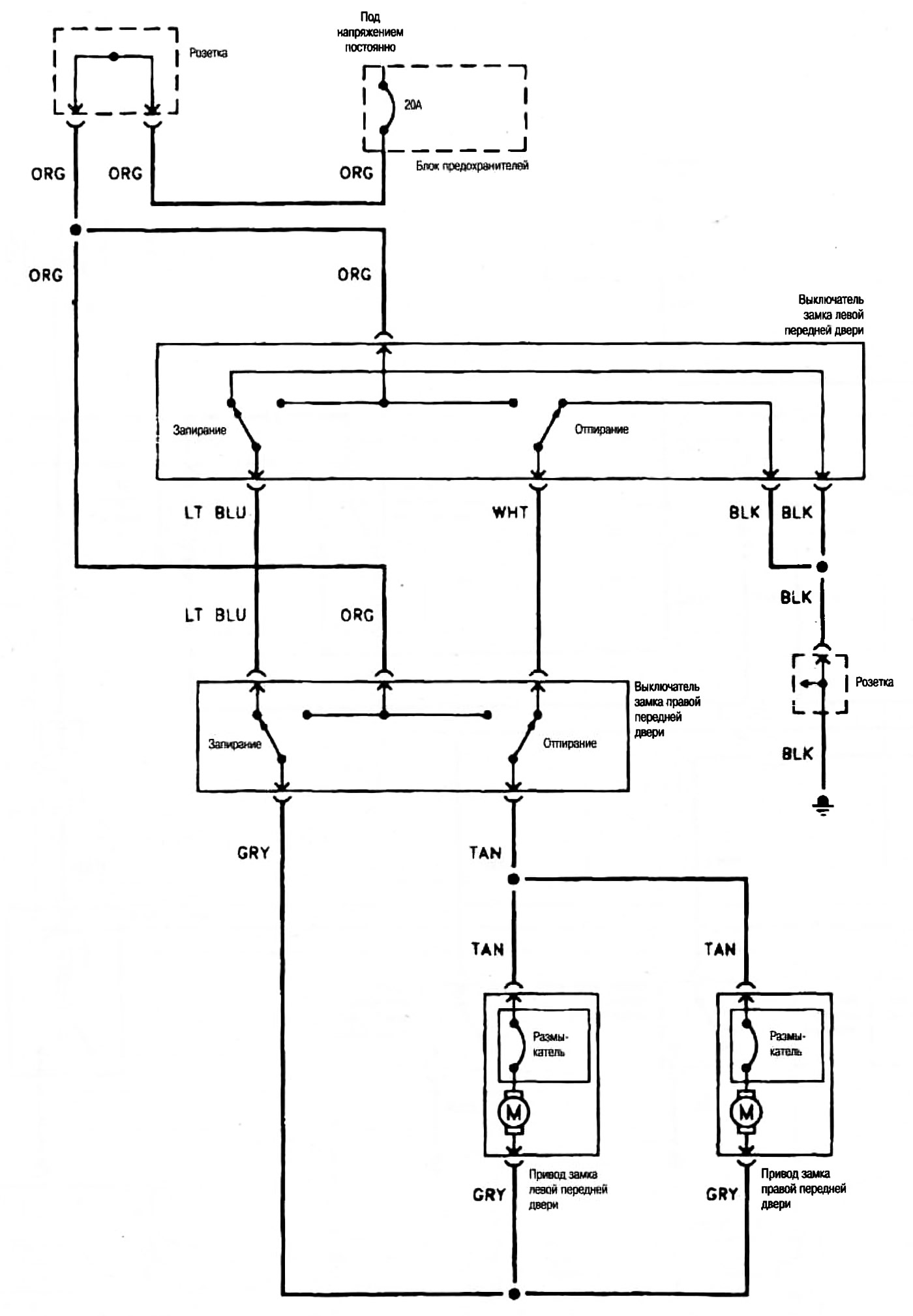 Электросхема электропривода стеклоподъемников на 2 дверях