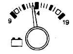 Показание в нижней предупреждающей зоне могут находиться, когда большое количество потребителей тока работают, а двигатель работает на холостом ходу в течение длительного времени. Это состояние нормальное, так как зарядная система не в состоянии обеспечить полную мощность при работе двигателя на холостом ходу. Когда обороты двигателя возрастают, это состояние корректируется, так как на больших оборотах зарядная система создает максимум мощности.