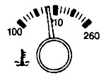 Этот указатель показывает температуру охлаждающей жидкости. Он также имеет индикатор, который показывает, в каких тяжелых условиях работает Ваш автомобиль. В большинстве случаев, этот прибор показывает 210°F (100°C) или меньше. Если Ваш автомобиль перевозит груз или поднимается вверх по склону, это нормально, если температура увеличивается и приближается к отметке 260°F (160°C), это свидетельствует о том, что охлаждающая система работает за пределами своих возможностей.