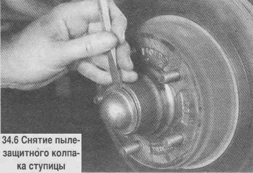 6. Подденьте и удалите пылезащитный колпак ступицы (смотрите фотографию).
