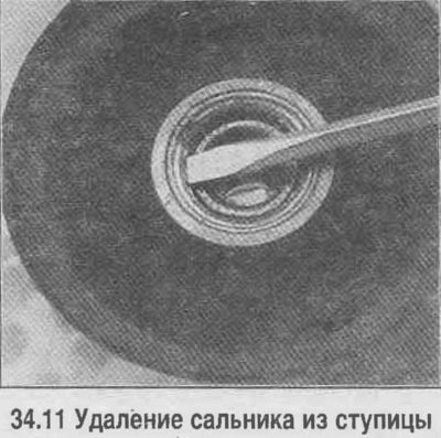 11. Удалите сальник из внутренней части ступицы (смотрите фотографию). Обратите внимание на первоначальную установку сальника.