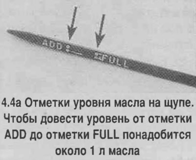 7. Масло следует обязательно заменить, если при проведении пальцами по щупу (до его протирания) ощущаются твердые частицы. Повышенный расход масла указывает на неисправность двигателя (износ поршневых колец, цилиндров, поршней, направляющих втулок и стержней клапанов, повреждение прокладки головки цилиндров). Если в масле на щупе обнаруживается молочный оттенок (в масло попадает жидкость из системы охлаждения), то двигатель также нуждается в ремонте.