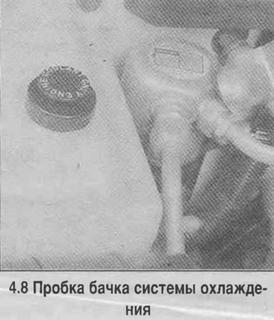 8. Все автомобили, рассматриваемые в данном Руководстве, оборудованы системой охлаждения под давлением. Расширительный бачок находится рядом с радиатором (смотрите фотографию).