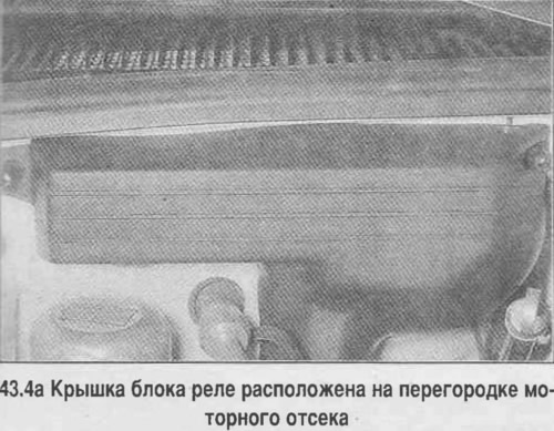 4. Перед проверкой момента зажигания в электронной системе зажигания EST снимите крышку блока реле (смотрите фотографию) и отсоедините провод коричневого цвета с черными полосками (смотрите фотографию).