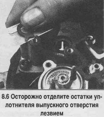 6. Удалите остатки старых уплотнений (смотрите фотографию).
