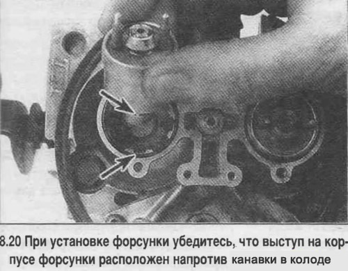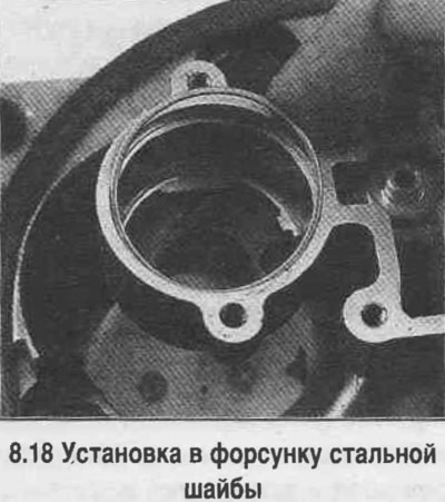 18. Установите в форсунку стальную шайбу (смотрите фотографию).