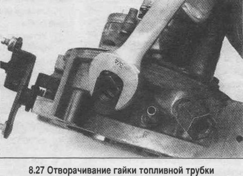 26. Отсоедините топливные магистрали, снимите уплотнительные кольца.