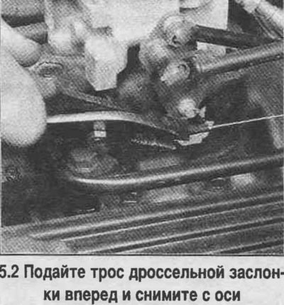 2. Отсоедините трос от рычага дроссельной заслонки (смотрите фотографию).