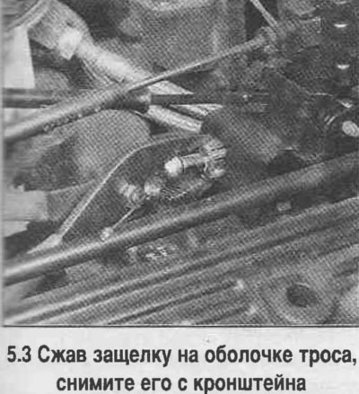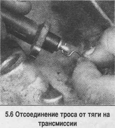 6. Вытяните трос за оболочку и отсоедините трос от тяги на трансмиссии (смотрите фотографию).