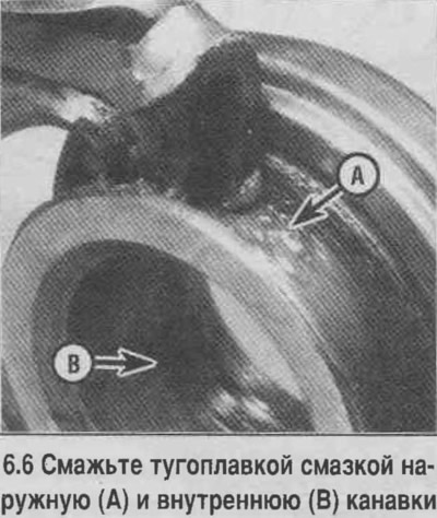 6. На моделях до 1995 г. слегка смажьте тугоплавкой смазкой канавки вилки выключения сцепления (смотрите фотографию).