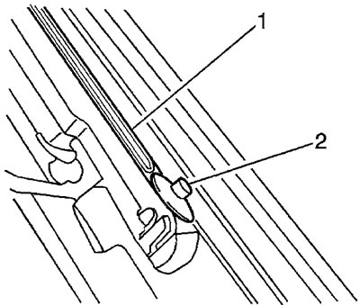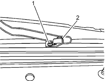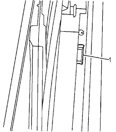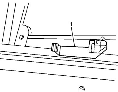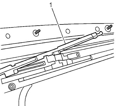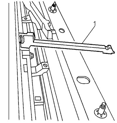 9. Снимите соединительную тягу (1), подняв наружный конец тяги до выхода из канала привода люка.