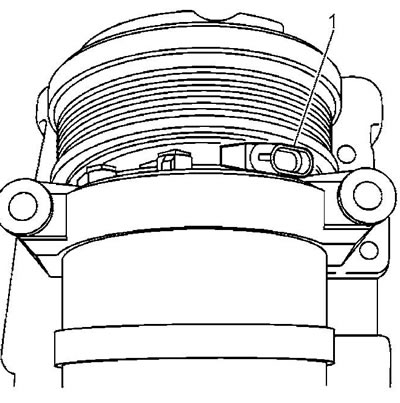 4. Снимите ремень привода компрессора со шкива компрессора кондиционера.
