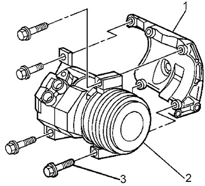 14. Отверните болты (3) крепления компрессора кондиционера. Момент затяжки 50 Н·м.