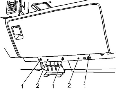 3. Отверните винты (1) крепления дверцы к раме приборной панели.