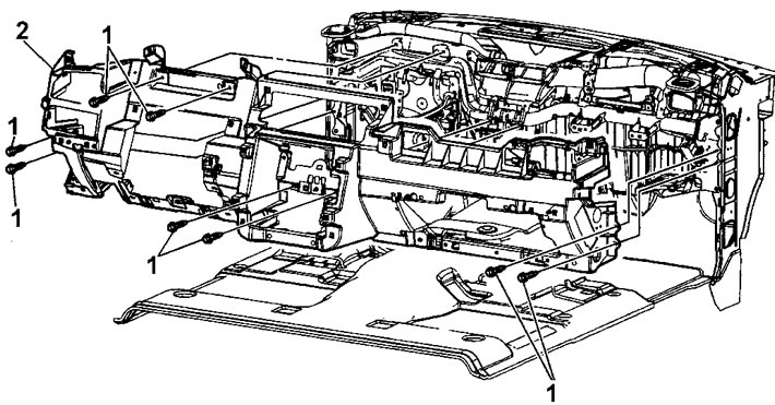 1. Снимите нижнюю часть приборной панели (Cadillac) или снимите раму приборной панели (кроме Cadillac).