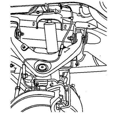 5. Снимите с верхнего поперечного рычага подвески клипсу поддержки проводов датчика.