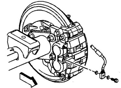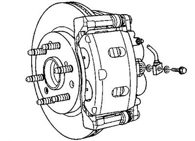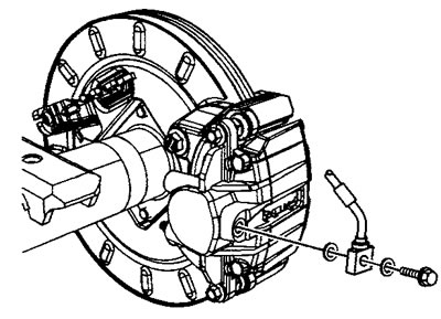 8. Отверните болт крепления тормозного шланга к суппорту.
