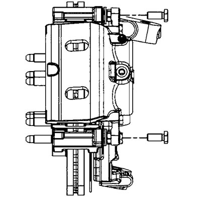 - При отворачивании и заворачивании болтов направляющих пальцев удерживайте направляющий палец ключом с открытым зевом. Не допускайте контакта ключа с суппортом.