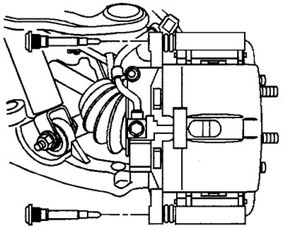 12. Снимите тормозной суппорт с кронштейна опоры.