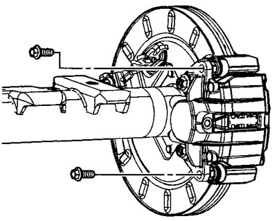 11. Отверните болты направляющих пальцев тормозного суппорта.