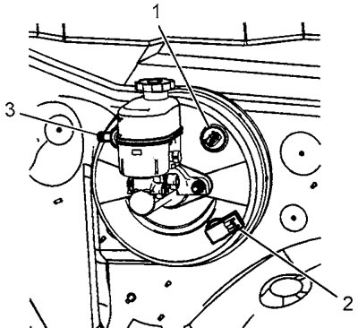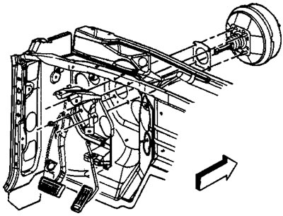 6. Отверните две гайки крепления главного тормозного цилиндра. Момент затяжки 33 Н·м.