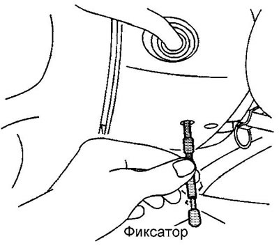 2. Зафиксируйте рулевой вал штырем, установленным через отверстие доступа в нижнем кожухе рулевой колонки.