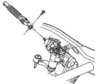 Примечание: перед отсоединением рулевого вала от рулевого механизма установите передние колеса в положение прямолинейного движения и переведите ключ замка зажигания в положение LOCK во избежание повреждения токосъемника системы пассивной безопасности.