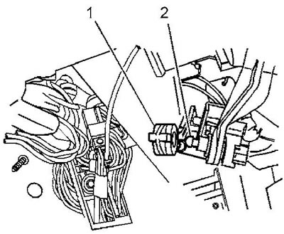5. Отсоедините от колонки трос (1) переключения передач.