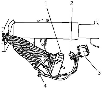 6. Отсоедините разъемы проводки рулевой колонки.