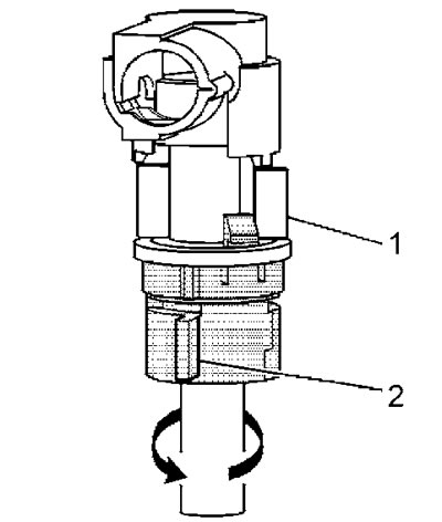 8. Снимите верхний изолятор (1). Не выбрасывайте пластиковое направляющее кольцо (2).
