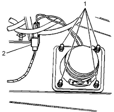 2. Отверните гайки крепления динамика (1). Момент затяжки 1 Н·м.