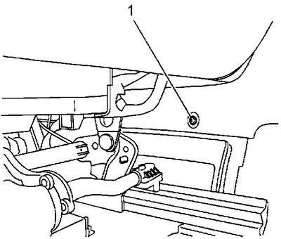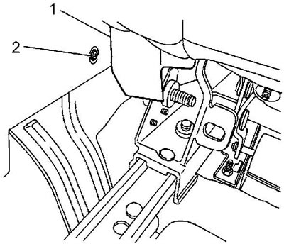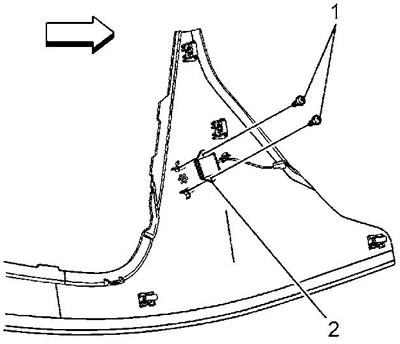 6. Поднимите отделочную панель сиденья (1) и отверните винт (2).