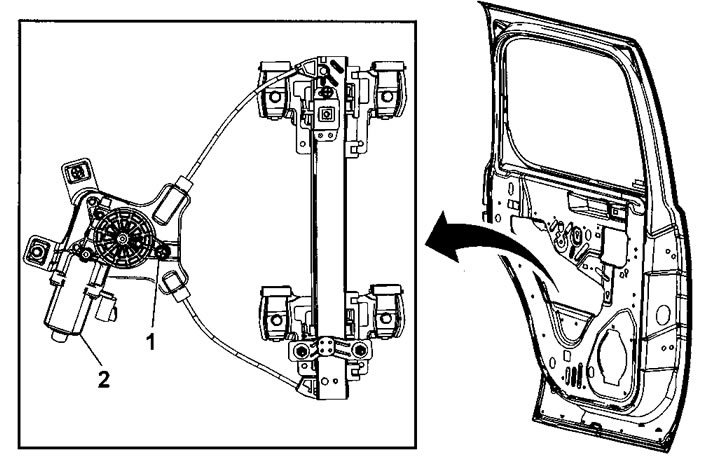6. Снимите электродвигатель привода стеклоподъемника (2).