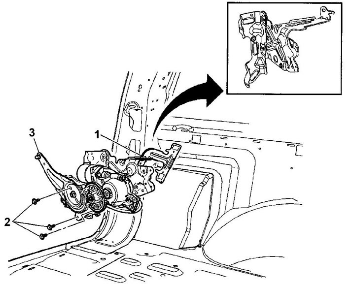 3. Отсоедините разъем от блока управления электроприводом задней двери (1).