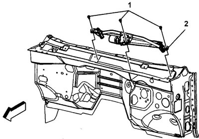 5. Снимите тягу привода очистителя лобового стекла (2).