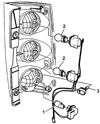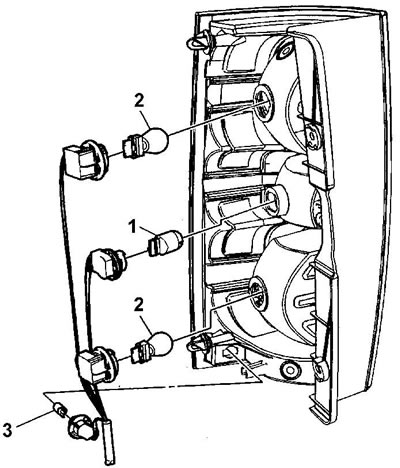2. Отсоедините разъем и извлеките лампу фонаря заднего хода (1).
