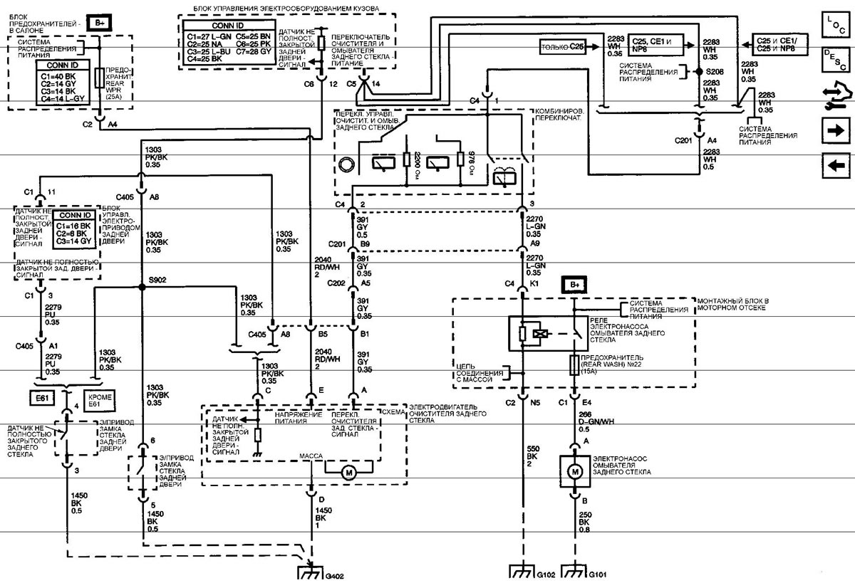 Статья о ремонте автомобилей Шевроле Тахо 2 и 3 (2000-2014): Очиститель и омыватель заднего стекла (Е52): https://www.chevyman.ru/Tahoe/2/electrics/schemes-2007/ochistitel-i-omyvatel-zadnego-stekla-e52