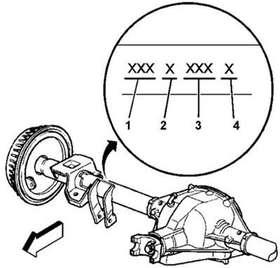 Номер заднего моста выбит на правой оси рядом с корпусом дифференциала.