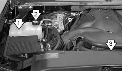 1 - расширительный бачок, 2 - крышка расширительного бачка, 3 - электровентилятор радиатора системы охлаждения