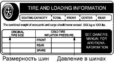 Рекомендуемое давление в шинах для модификации Вашего автомобиля можно посмотреть на табличке, расположенной на стойке двери водителя.