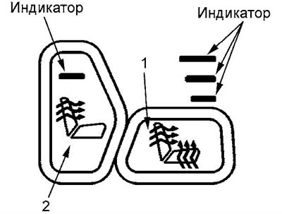 Для включения обогрева только спинки сиденья, нажмите на выключатель (2), при этом на выключателе будет гореть индикатор.