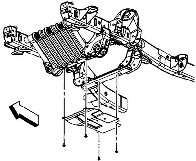 3. (Двигатели LC9/L76/L92 и двигатели LMG/LY5/LY6 серии 1500) Отверните болты крепления защиты масляного поддона (если установлен).