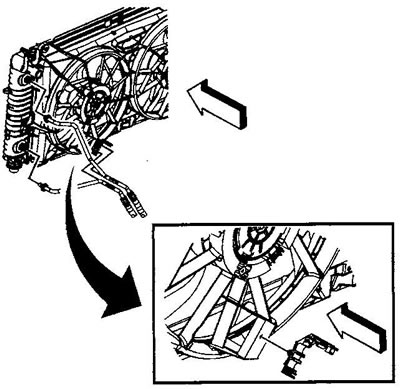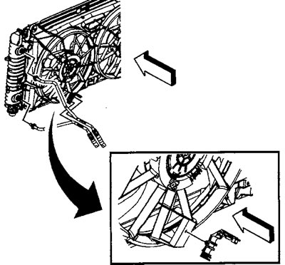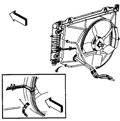 - откройте клипсу фиксации шлангов охладителя масла, расположенные на нижней части диффузора вентилятора;