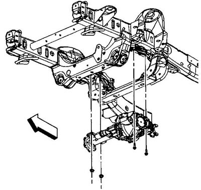 9. На автомобилях серии 1500 отверните гайки крепления правой стороны картера дифференциала.