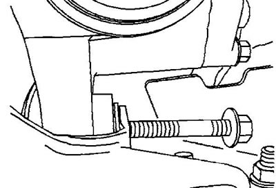 13. Снимите болт и гайку верхней опоры картера дифференциала.