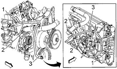 1. Снимите два хомута (1) крепления вентиляционного шланга.